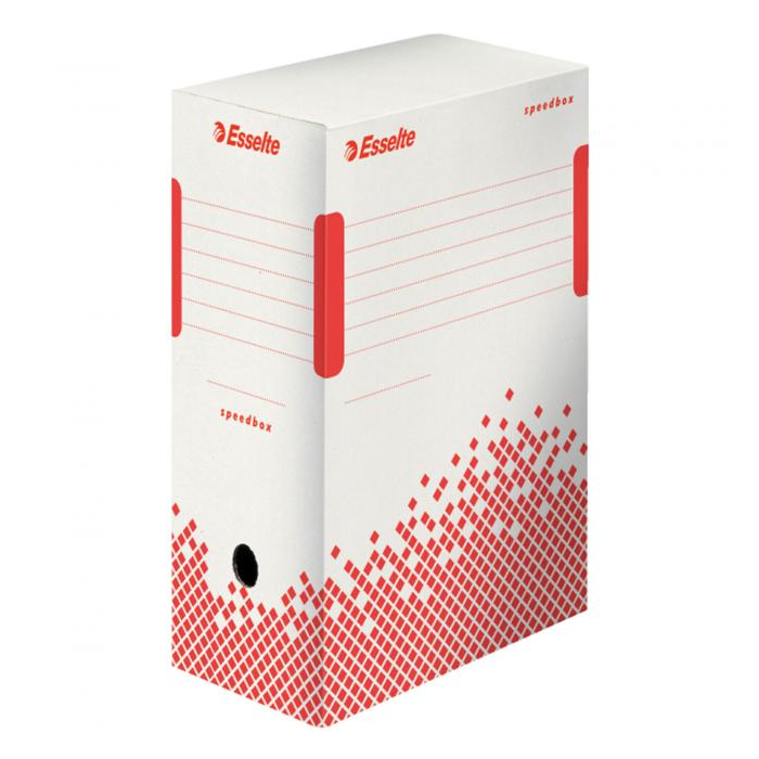Archívny box z archivačného systému Speedbox. Dvojité bočnice chránia box pred otvorením a spevňujú okolie chrbtového úchytu. Vhodný pre dokumenty formátu A4. Ideálna veľkosť pre archiváciu v policiach, určené pre vertikálnu a horizontálnu archiváciu. Vyrobený zo 100% recyklovanej vlnitej lepenky. Chrbát 150 mm. Väčšie balenie 25 kusov.