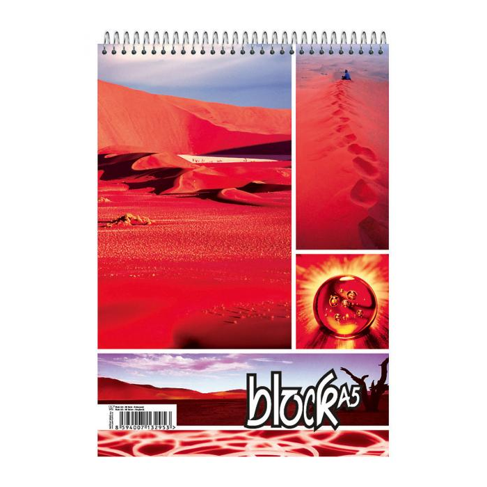 Bloky z bezdrevného papiera so špirálou navrchu, s farebnou prednou stranou a mäkkými doskami. Formát A5. Gramáž papiera: 60 g/m2. Väčšie balenie 10 ks.