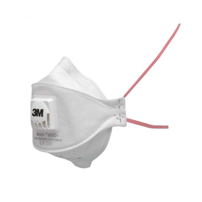 Časticový respirátor FFP3 Aura 9332+ s výdychovým ventilom 3M™ Aura™ Respirátor s filtrom častíc 9332+ poskytuje ochranu pri dýchaní kategórie FFP3, umožňuje zloženie do roviny, skladá sa z 3 panelov,