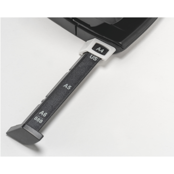 Príložník s kontrastnou potlačou označujúcou jednotlivé formáty, rámik na presné určenie formátu, pevná fixácia