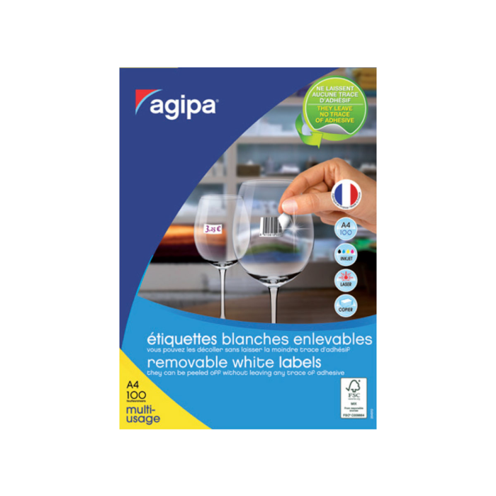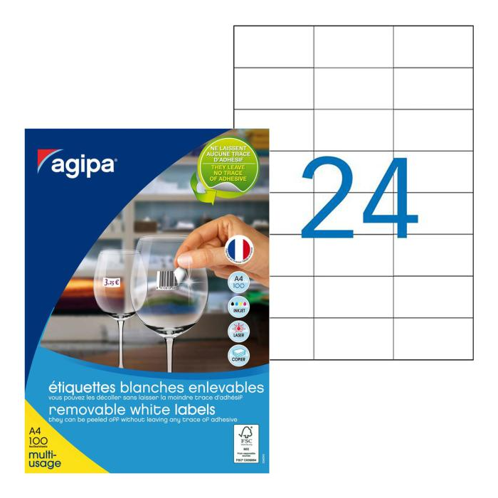 Etikety univerzálne odnímateľné 70x37mm Agipa A4 100 hárkov