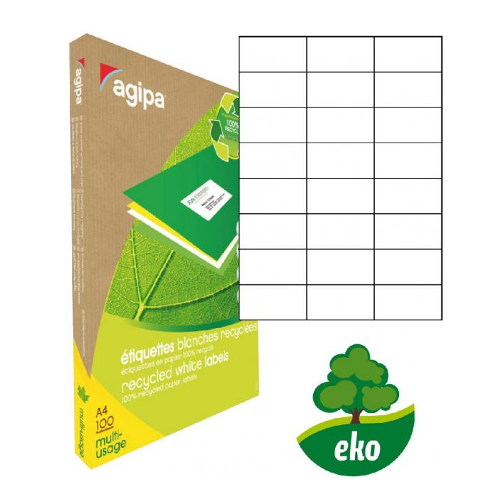 Etikety univerzálne recyklované 70x37mm Agipa A4 100 hárkov