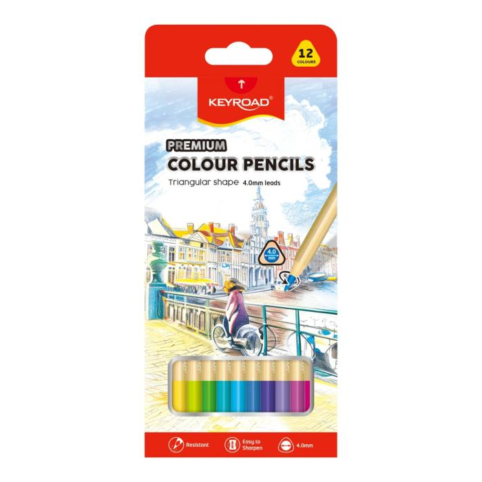 Farbičky KEYROAD trojhranné, 12 ks, mix farieb