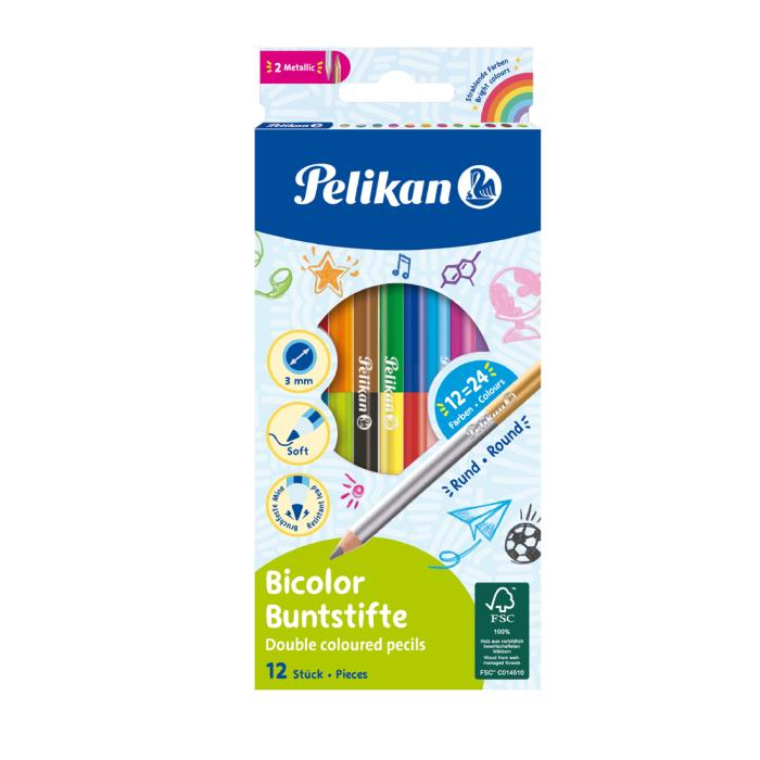 Farbičky Pelikan Bicolor 12 ks/24 farieb