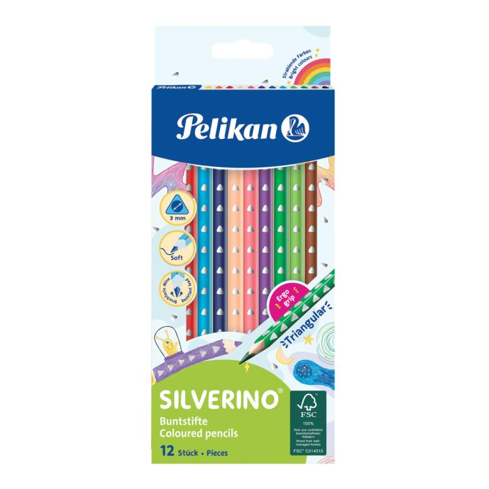 Farbičky Pelikan Silverino trojhranné tenké, sada 12 ks