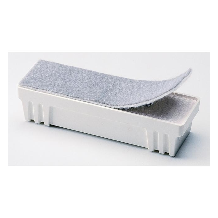 Magnetická stierka s vymieňateľnými filcovými vankúšikmi. Farba biela. Rozmery 14 × 4,5 cm.