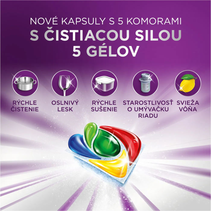 Tablety do umývačky riadu JAR Platinum Plus 30 Minute Miracle 100 ks Číslo 1 na umývanie zaschnutých zvyškov jedla Zázračné riešenie všetko v jednom pre dokonale čistý riad bez námahy. Kapsule do umývačky riadu Jar 30 Minute Miracle Platinum Plus sú navrhnuté na rýchle a maximálne účinné umývanie aj silne znečisteného riadu. Vďaka pokročilej technológii a päťkomorovej kapsuli si poradia so zaschnutými zvyškami jedla už za 30 minút, bez nutnosti predumývania alebo opakovaného umývania. Ideálna voľba pre rušné domácnosti, ktoré chcú perfektný výsledok hneď po prvýkrát.