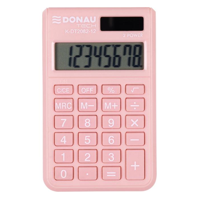 Kalkulačka s 8-miestnym displejom a gumenými tlačidlami. Farba ružová. Záruka 5 rokov. Technická špecifikácia: • výpočet % a odmocniny • automatické vypnutie • duálne napájanie (solárne + batéria) • rozmery 60 x 97 x 11 mm.
