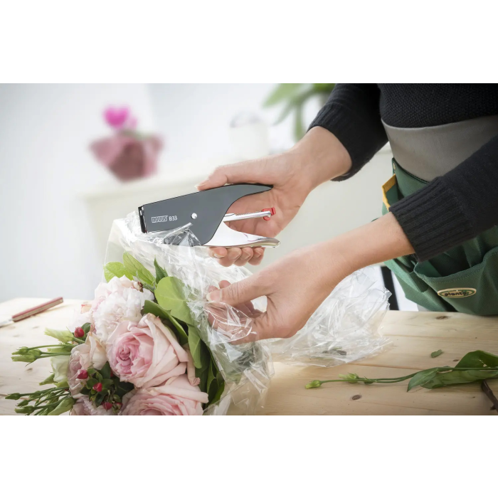 Toto zariadenie dokáže spracovať maximálne 15 listov (80 g / m²). Maximálna hĺbka vkladania papiera je 40 mm. Typ spiniek: č.10