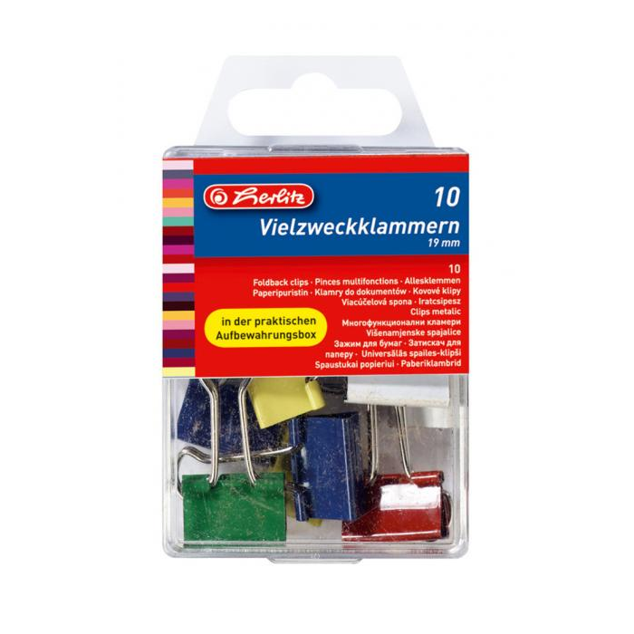 Klipy na dokumenty Herlitz 19mm farebné 10ks