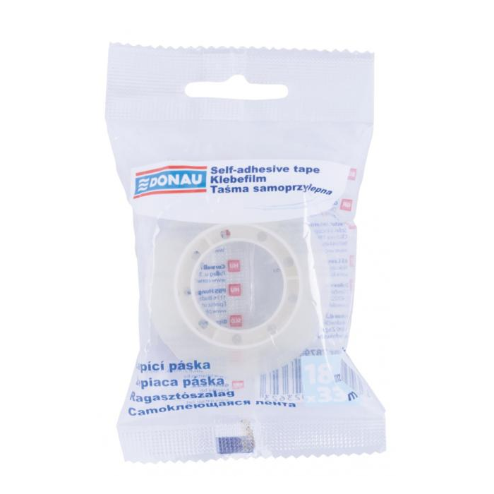 Kancelárska páska vyrobená z polypropylénu odolného voči žltnutiu, všestranná - na použitie v kancelárii, domácnosti a škole Vysoko priehľadná Neviditeľná na kópiách a faxových prenosoch Silné lepidlo zaisťuje dlhú životnosť Šírka: 18 mm Dĺžka: 33 m