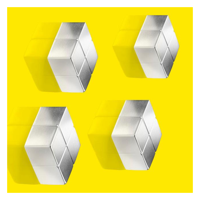 Štýlové neodymové magnety s lešteným povrchom v tvare kocky s vysokokvalitným obalom z hliníka v titánovo sivej farbe udržia na sklenenej tabuli artverum® cca 8 hárkov papiera. Rozmery 11 × 11 × 11 mm. Balenie 5 ks.