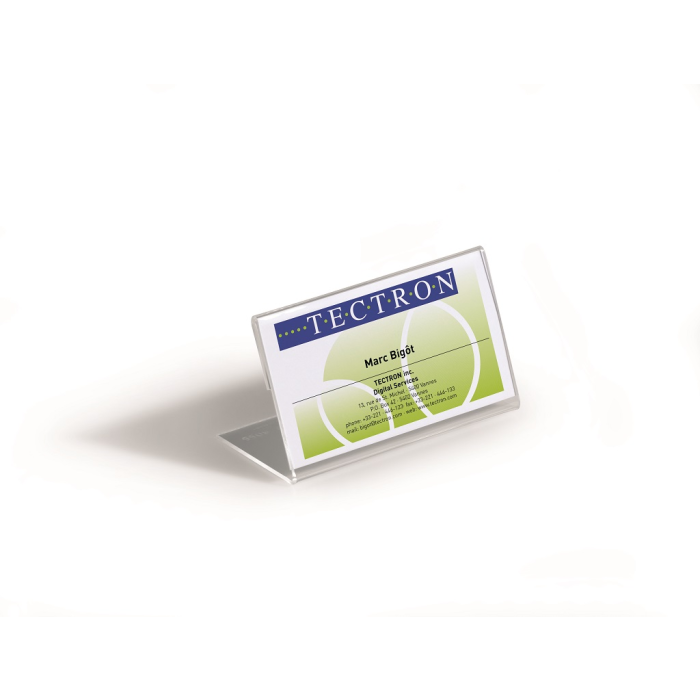 Stabilná stolová menovka „L“ profilu vyrobená z akrylu. Vhodná na konferencie, recepčné pulty, ceny tovarov a popis produktov. Väčšie balenie 10 ks.