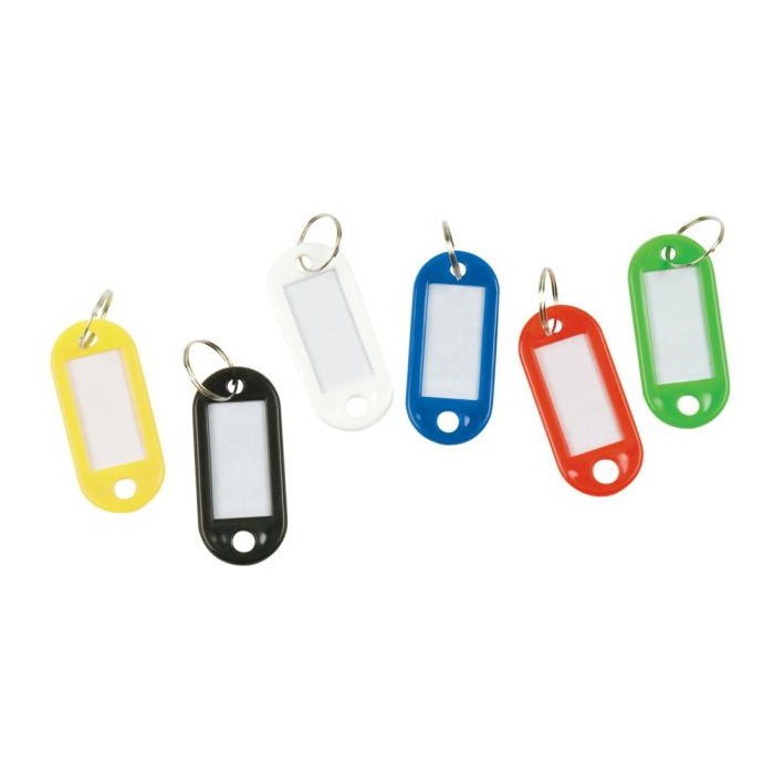 Plastové menovky na kľúče s krúžkom. Balenie 10 ks v jednej farbe. Farba červená.