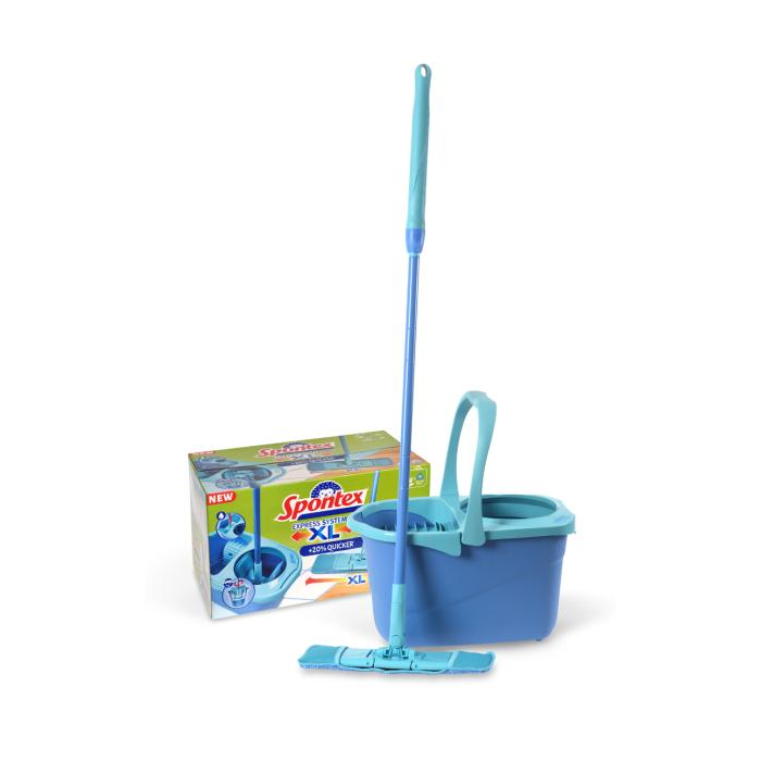Nový ES+XL plochý systémový mop s väčšou hlavou (dĺžka, nová väčšia časť čistiacej časti +2,5cm väčší pre účinnejšie čisteni. Rovnaké vedro aj okraj. Dlhšia hlava mopu +20%, dlhšie krídla hlavy mopu vs. existujúca hlava mopu +3.1 cm na každej strane, celkovo +6.2cm 65% výrobku vyrobené z recyklovaného plastu.