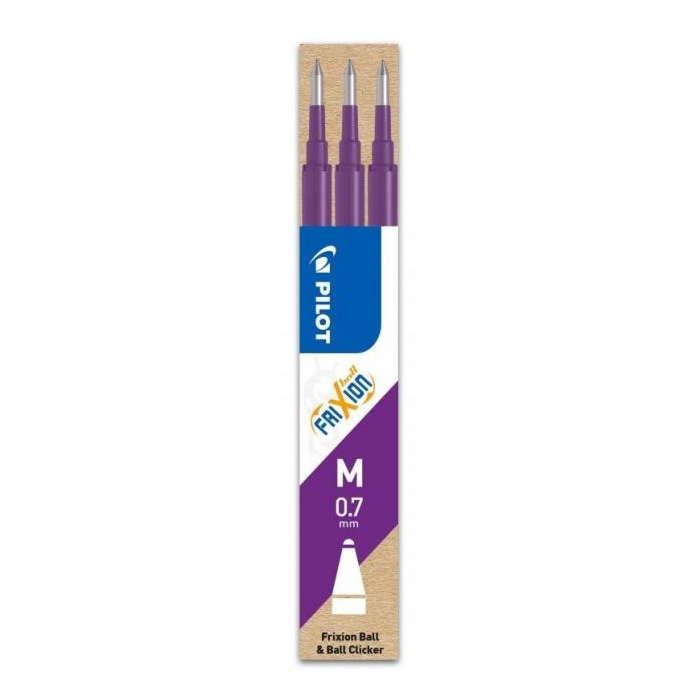 Náplň s prepisovateľným atramentom do rollerov Pilot FriXion Clickera FriXion Ball. V balení 3 ks. Gulička 0,7 mm.