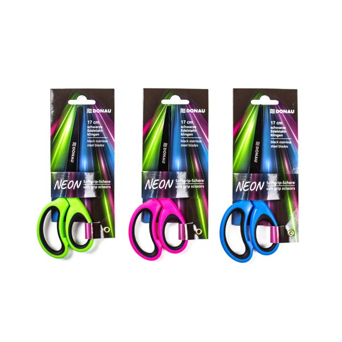 Nožnice majú vysoko kontrastnú čiernu pogumovanú rukoväť, ktorá poskytuje pohodlný úchop a presné ovládanie pri strihaní. Ostrá čierna čepeľ z nehrdzavejúcej ocele umožňuje presné a bezproblémové strihanie rôznych materiálov, ako je papier, tenké látky alebo obaly. S dĺžkou strihu 7,7 cm sú nožnice praktické a všestranné. Napriek svojej robustnej konštrukcii vážia nožnice iba 47 gramov, vďaka čomu sú obzvlášť užívateľsky prívetivé. Tvar: Asymetrický, rovný, predĺžený. Zaoblená špička čepele. Vhodné pre pravákov. Materiál čepele/rúčky: nehrdzavejúca oceľ/polypropylén (PP). Rôzne farby rukoväte (neónovo ružová, neónovo zelená, neónovo modrá). Jednotlivo balené na blistri.