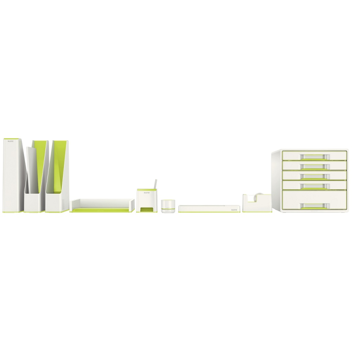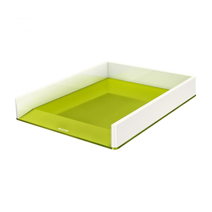 Stohovateľný kancelársky odkladač na dokumenty, časopisy a zložky v dvojfarebnom prevedení v metalických farbách WOW s lesklým povrchom. Farba zelená.