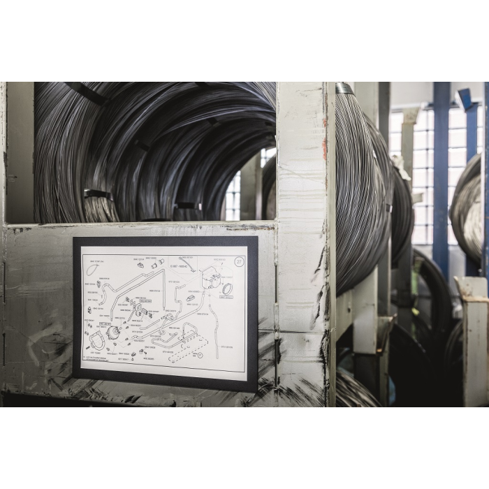 Panel s plne magnetickou zadnou časťou na posilnené držanie na kovových povrchoch. Jednoduché a rýchle vkladanie informácie formátu A4.