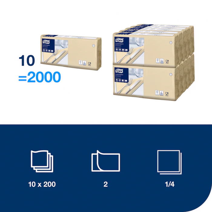 Papierové servítky 2-vrstv. TORK Exclusiv 33 x 33 cm, slonová kosť/ 200 ks