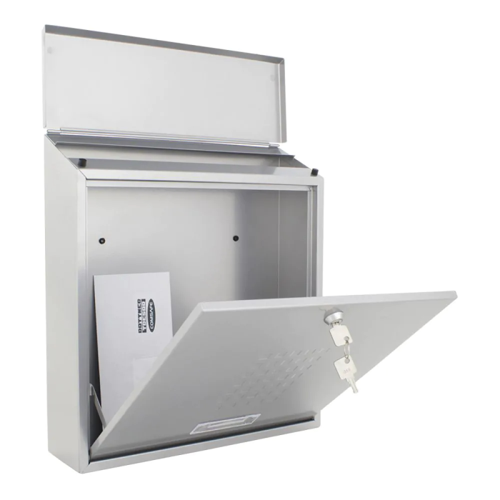 Klasická poštová schránka ponúka minimalistický dizajn a menovku v spodnej časti. Horný vhodzový otvor je ideálny pre poštu do veľkosti max. A4. Kvalitné spracovanie z pozinkovaného plechu odolá poveternostným vplyvom a hrdzaveniu, aj preto je vhodná do exteriéru. Poštu jednoducho vyberiete pomocou veľkých predných dvierok, ktoré jednoducho odklopíte smerom nadol. Doručenú poštu tak rýchlo a jednoducho vyberiete a schránku opäť môžete uzamknúť. V zadnej stene sú pripravené otvory na upevnenie na stenu. Upevňovací materiál je súčasťou dodávky.