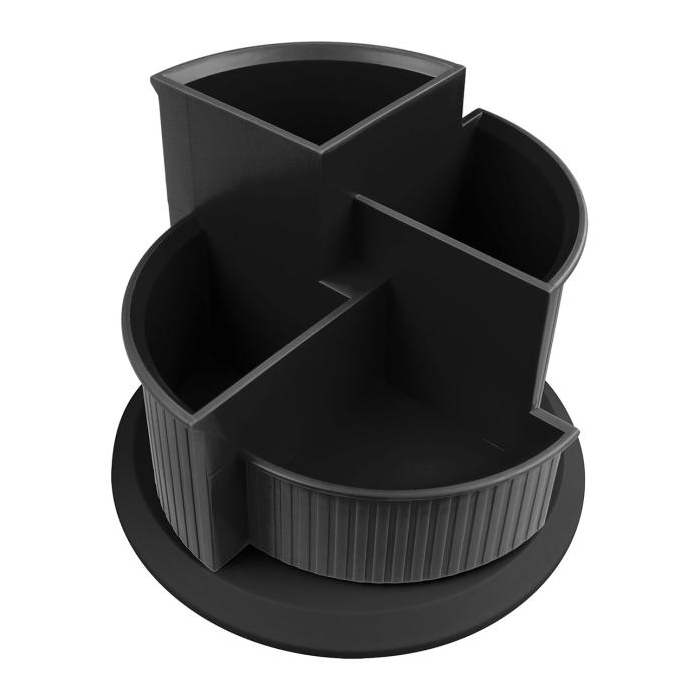 Rotačný stojan so 4 sekciami na písacie potreby a ďalšie drobnosti v dizajne rady Linear. Priemer 14 cm, výška 10 cm.