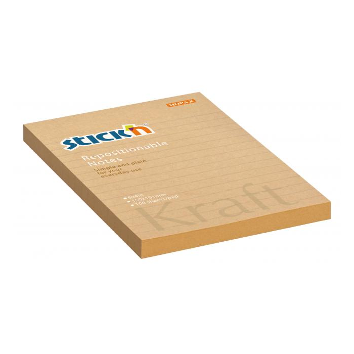 Samolepiaci bloček Stick’n Hopax Kraft, 150x101 mm, prírodná hnedá, linajkový