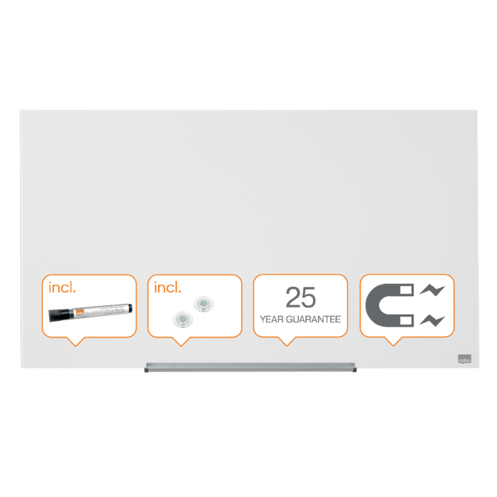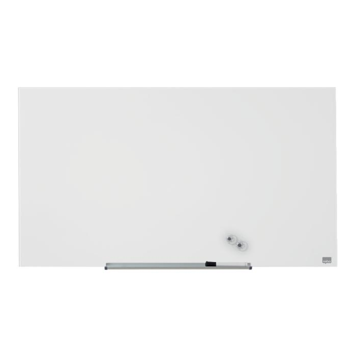 Na širokouhlé sklenené tabule Nobo sa vojdú všetky vaše nápady! Širokouhlý formát a minimalistický rámček maximalizujú využiteľnú plochu na písanie. Systém InvisaMount™, pre jednoduchú inštaláciu na stenu, schová všetky montážne prvky za doskou tabule. Vďaka tomu tabule majú moderný, štýlový a ničím nerušený dizajn. Súčasťou tabule je taktiež odnímateľný hliníkový odkladač na popisovače. Magnetický sklenený povrch zaručuje najlepšiu možnú mazateľnosť a je vhodný na každodenné používanie. Veľkosť uhlopriečky: 45” (114 cm).
