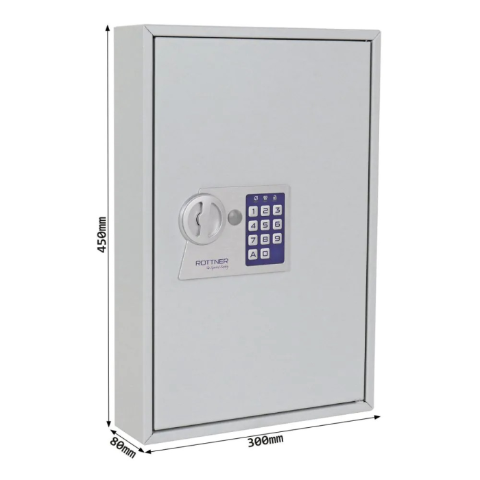 Moderná skrinka na kľúče ponúka pohodlné otváranie prostredníctvom elektronického zámku s mechanickým núdzovým otváraním a napájaním na klasické 1,5V AA batérie.
