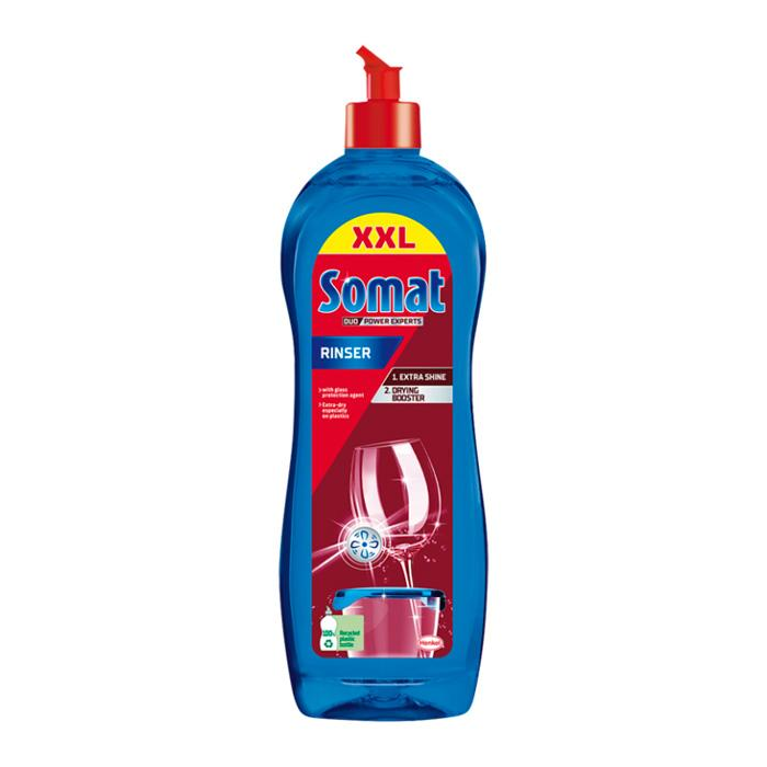 Doprajte si lesklý a suchý riad a poháre s leštidlom Somat. Vďaka vylepšenému zloženiu na ochranu skla zažijú vaše poháre a riad extra rýchloschnúci efekt. Je obzvlášť účinný na plastoch. Leštidlo Somat do umývačky je navyše dodávané v 100% recyklovanom plastovom obale.