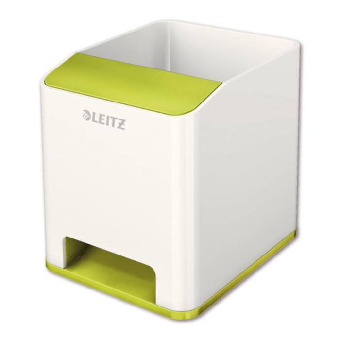 Neprehliadnuteľný štýlový stojan na perá v prémiovej kvalite Leitz v štýlových žiarivých farbách WOW. Extra odkladač pre smartphone do veľkosti iPhone 6 plus so špeciálnou funkciou pre zosilovanie zvuku, veľa miesta pre písacie potreby, pravítko, stylus a iné drobnosti. Moderný dizajn, ktorý vyzerá rovnako dobre v kancelárii, ako aj doma na pracovnom stole, dobre dopĺňa ostatné produkty radu WOW.