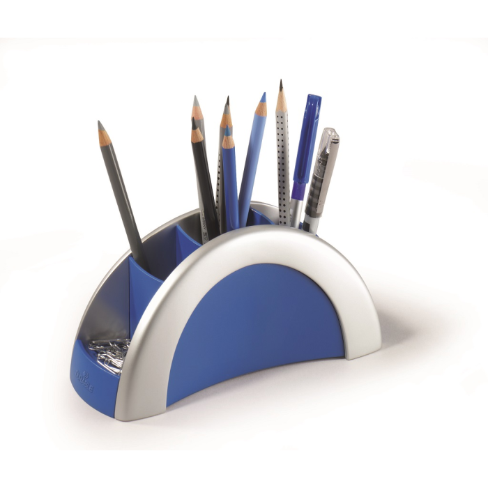 Vysoko kvalitný stojan v exkluzívnom prevedení v dizajne produktovej rady DURABLE VEGAS. Päť rôzne veľkých oddielov vhodných na perá, ceruzky, nožnice, spinky, spony a pod. Protišmyková úprava. Rozmery (š×v×h) 205×90×80 mm.