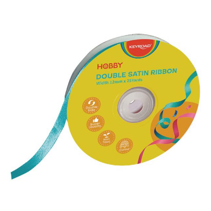 Stuha KEYROAD dvojitá saténová 12 mm x 22,86 m na cievke, modrá