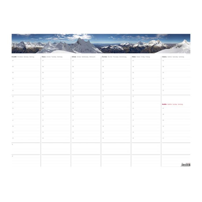 Plánovacia písacia podložka s ochrannou plastovou lištou proti poškodeniu listov. Každý list obsahuje predtlačené oddiely na sedem dní v týždni. Možnosť plánovania po hodinách a zapisovania telefonátov. Obsahuje 20 listov. Rozmery: 63 x 48 cm, formát A2 Farba: biela