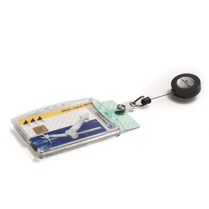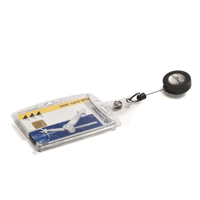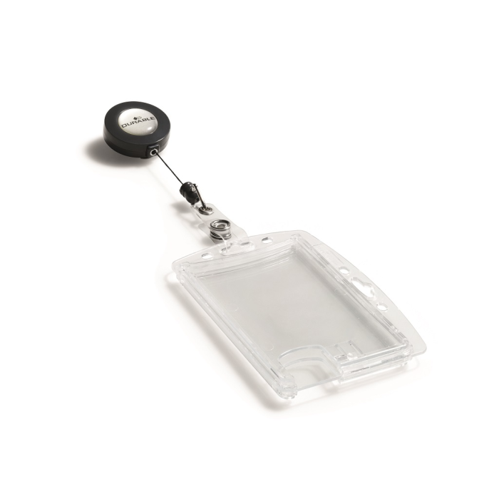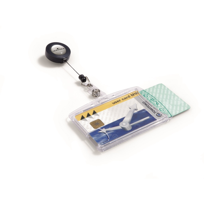 Visačka na karty v uzavretom prevedení na 2 ID karty/bezpečnostné preukazy. Krištáľovo čistý materiál pre optimálnu čitateľnosť a jednoduché skenovanie čiarových kódov. S otvorom pre palec pre ľahké vybratie karty. Možno kombinovať s retiazkou, navíjacou menovkou alebo textilnou šnúrkou na zavesenie. Držiak karty je možné použiť vo formáte na výšku alebo na šírku. Vnútorné rozmery: 54 x 87 mm (V x Š).