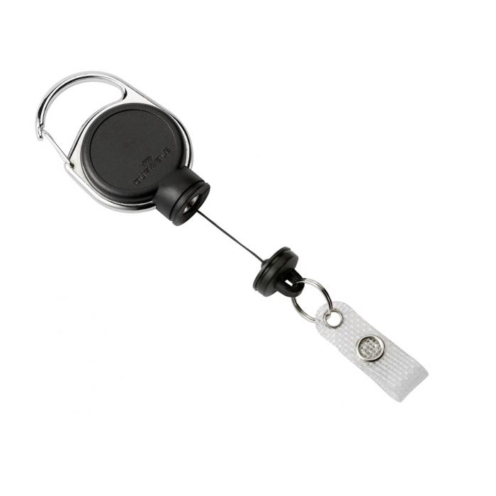 Výsuvný kotúč s magnetickým zámkom na ťažké karty alebo kľúče s hmotnosťou do 300 g a možnosťou vysunutia do 60 cm. Kovová spona, malý krúžok na kľúče s prúžkom.