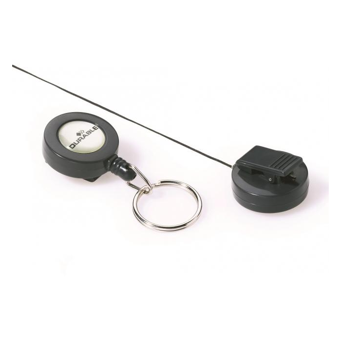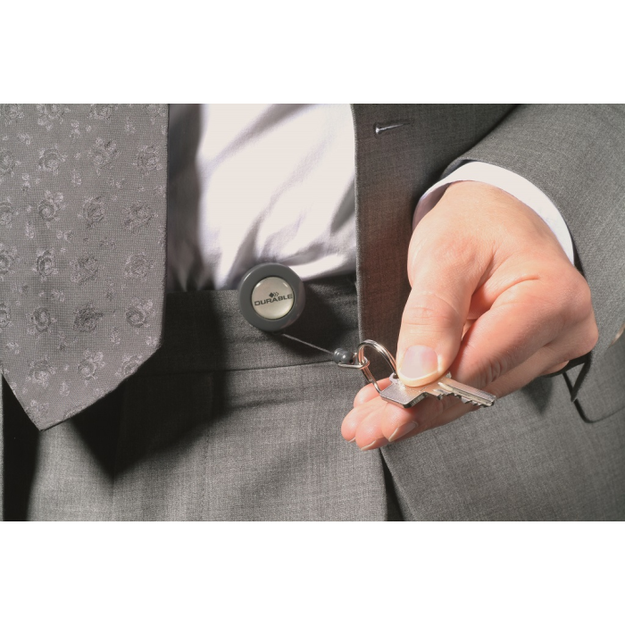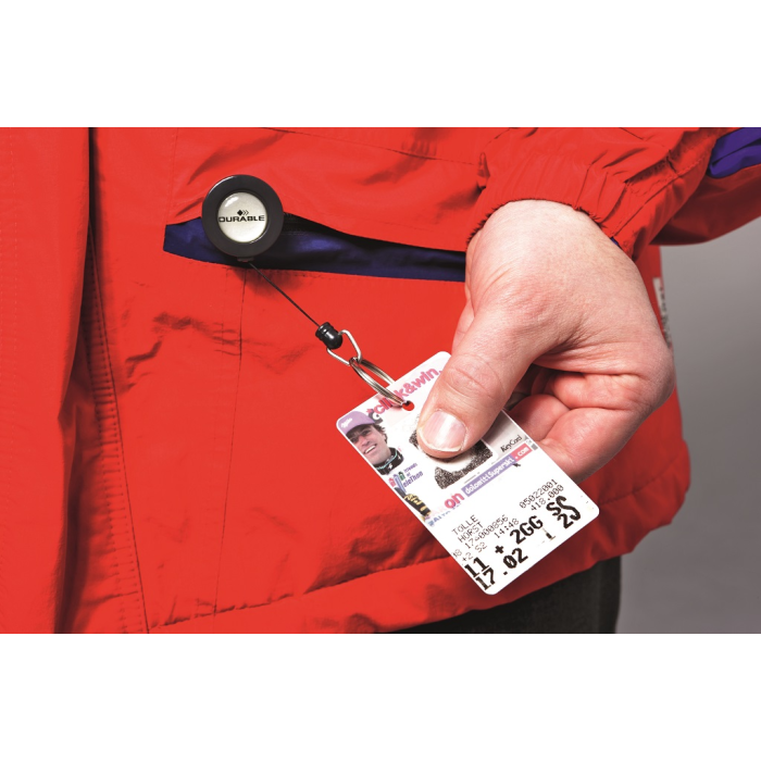 Vysúvací kotúčik s možnosťou vysunutia do 80 cm. Vhodný na uchytenie všetkých visačiek značky Durable s perforáciou. Karička priemeru 25 mm. Balenie 10 ks.