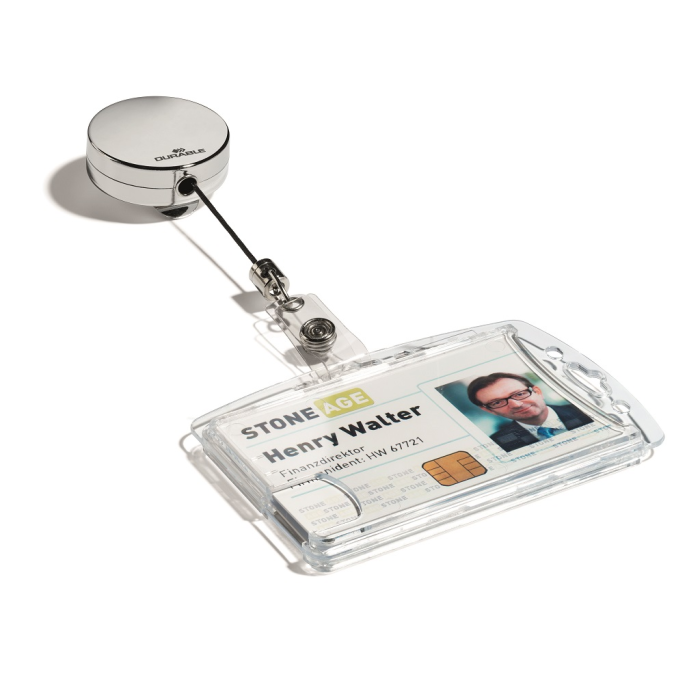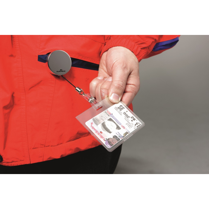 Vysúvací kotúč s možnosťou vysunutia do 80 cm. Vhodný na uchytenie všetkých visačiek značky DURABLE s perforáciou. Priemer kotúča 40 mm. Balenie 10 ks. Farba: strieborná