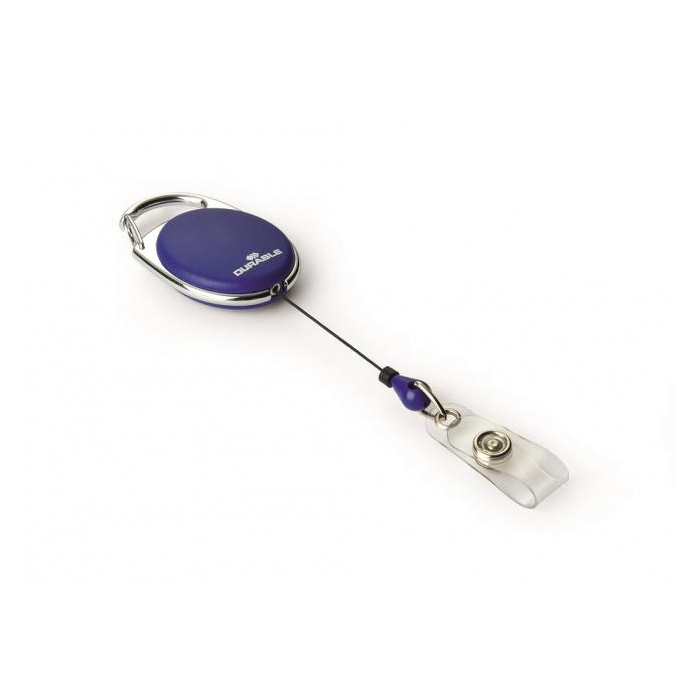 Štýlový oválny vysúvací kotúč s možnosťou vysunutia do 80 cm a kovovým klipom na rubovej strane. Vhodný na uchytenie všetkých visačiek značky DURABLE s perforáciou. Balenie 10 ks.
