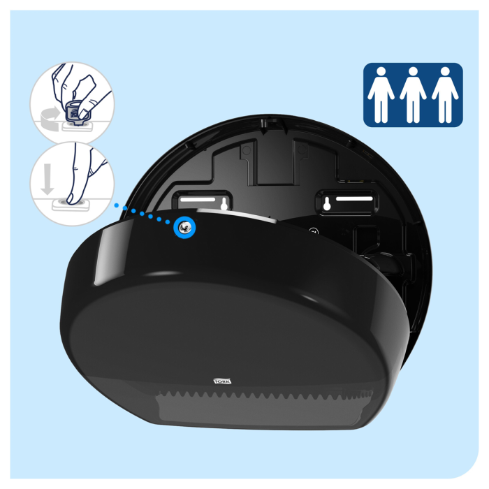 Tork zásobník na toaletný papier Jumbo kotúč v dizajne Elevation je vhodný pre vysoko frekventované miesta. Jeho mimoriadne veľká kapacita šetrí čas na údržbu a zaisťuje, aby bol papier vždy k dispozícii.