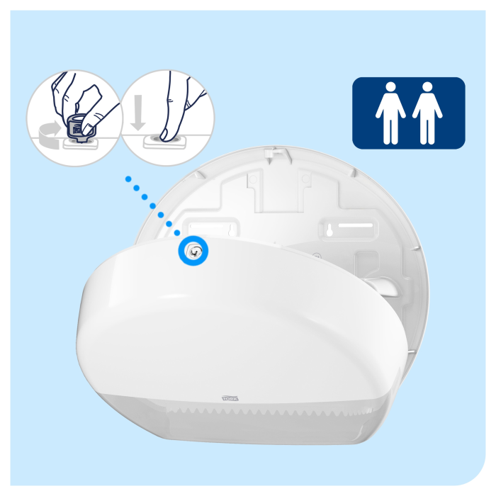 Tork zásobník na toaletný papier Mini Jumbo v dizajne Elevation je ideálny pre stredne až vysoko frekventované toalety a umyvárne, kde sú časová efektívnosť a znížené náklady dôležité. Jeho veľká kapacita šetrí čas na údržbu a zaisťuje, aby bol papier vždy k dispozícii. Zásobníky Tork Elevation majú hladký, praktický, moderný dizajn.