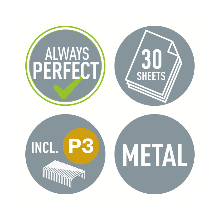 Pevná a spoľahlivá celokovová zošívačka na každodenné použitie. Už žiadny stres so zaseknutým drôtikom vnútri zošívačky vďaka patentovanej technológii DIT. Najlepšie výsledky dosiahnete v kombinácii s drôtikmi Leitz Power Performance P3 (24/6, 26/6).