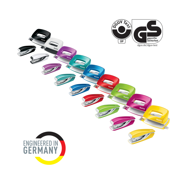 Malá zošívačka v moderných žiarivých farbách ideálna nielen do kancelárie, ale aj domov alebo na cesty. Vždy perfektné zošitie vďaka patentovanej technológii DIT. V kombinácii so spinkami Leitz Power Performance P2 (č. 10) dosiahnete vždy jednoduché a správne zošitie.Kapacita 10 hárkov. Vrecková zošívačka. Patentovaná technológia DIT na spoľahlivé zošívanie. Balenie v škatuľke, vrátane spiniek. Otvorením ramena o 180° je možné použiť nástenkové zošívanie (takrovanie). Farba čierna.